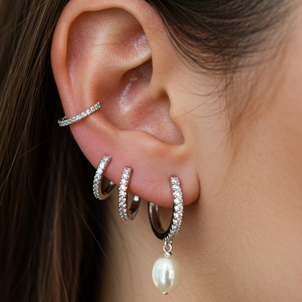 Design Excepcional: A argola cravejada traz um brilho radiante, enquanto o pingente de pérola adiciona um toque de delicadeza e classe. Um acessório que se destaca e traz personalidade ao seu visual.
