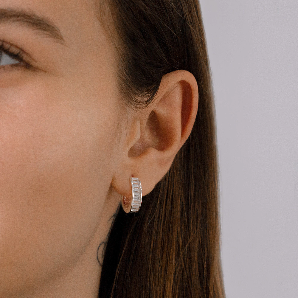O resplandecente brilho da prata se entrelaça de maneira cativante com o brilho sutil dos cristais, conferindo a esta peça um charme incomparável.Use esta argola para elevar qualquer look, seja para uma noite especial ou para adicionar um toque de glamour ao seu dia a dia. Experimente a sensação de ser envolvida pela aura luxuosa desta peça única, feita para despertar desejo e transformar cada momento em uma ocasião especial. Cada curva capturam a essência da elegância, garantindo que essa argola seja muito mais do que uma simples joia – é uma expressão do seu estilo.