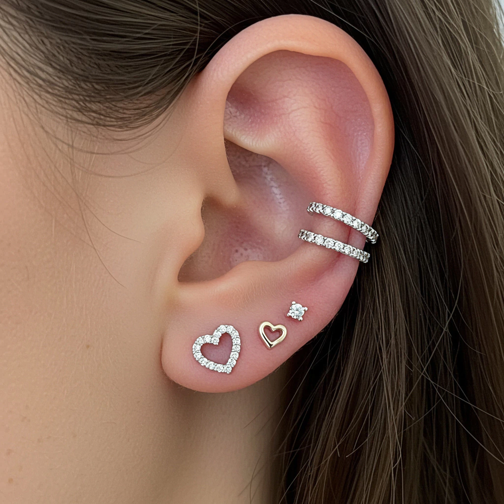 Encante-se com o nosso brinco feminino em prata 925, delicadamente moldado em forma de coração e adornado com deslumbrantes zircônias. Este modelo encantador é versátil, podendo ser usado não apenas no primeiro furo, mas também no segundo, terceiro ou até mesmo como piercing. É a escolha perfeita para complementar sua coleção de brincos e adicionar um toque de elegância aos seus looks.