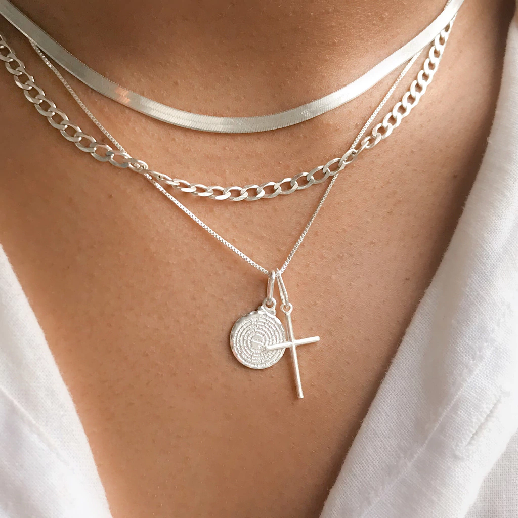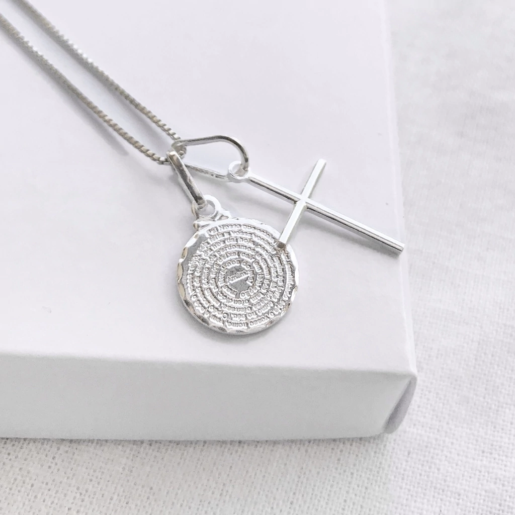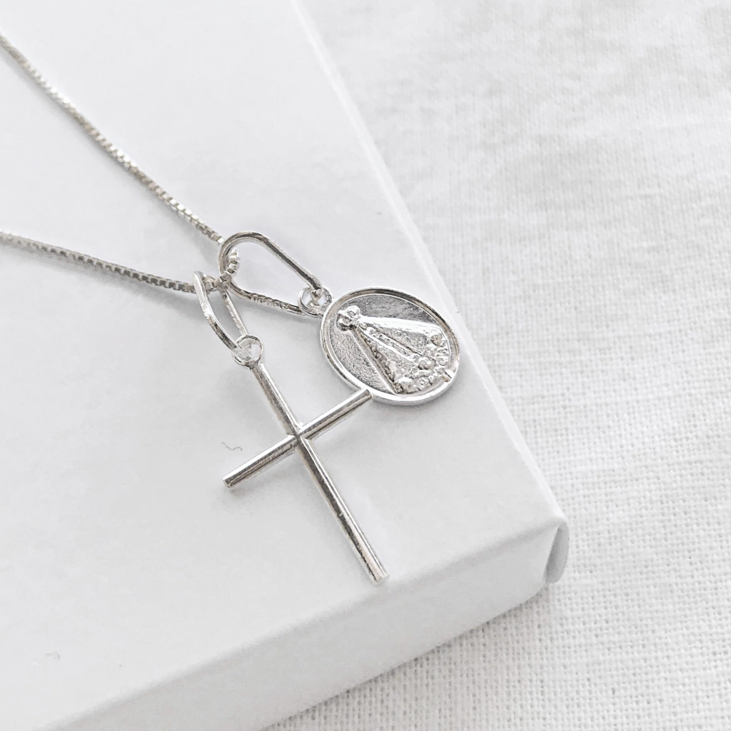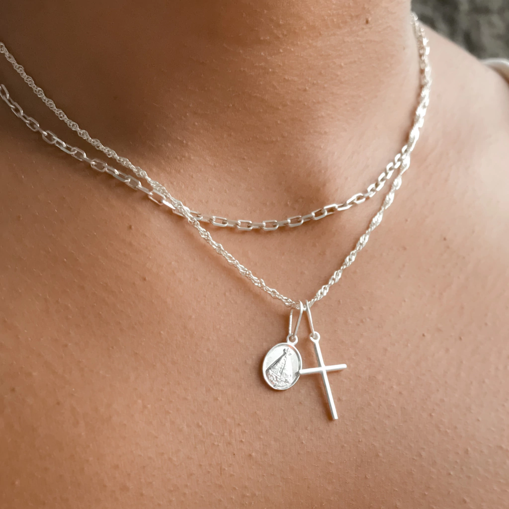 Esse modelo de colar de patuá é moderno e contemporâneo, com impecável acabamento. Dois pingentes uma cruz e uma medalha que expressa fé e religiosidade de modo especial. Carregue esse colar junto ao coração para se aproximar mais de Deus. Combine com um colar longo mais fino. Encontre mais produtos da Coleção Religiosa disponíveis no site da Mulher de prata!