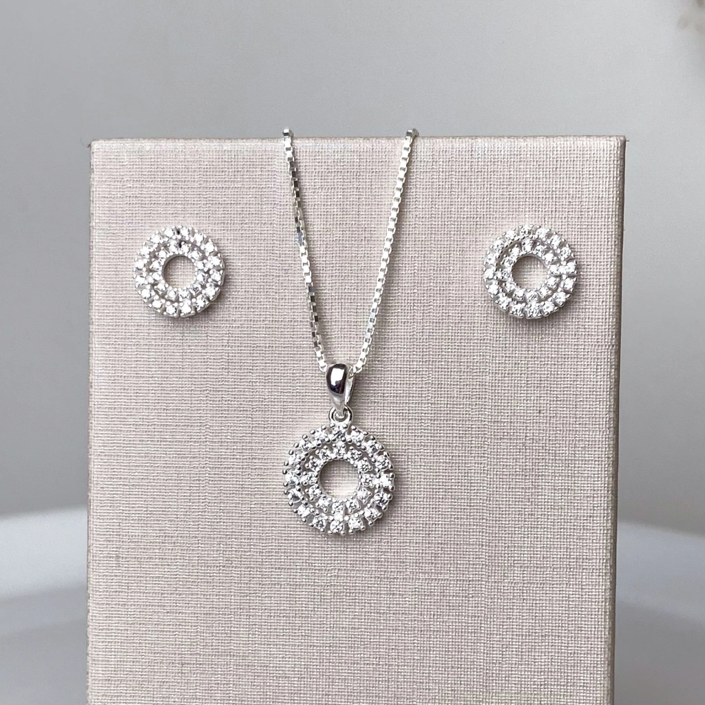 Desfrute da elegância incomparável com nosso deslumbrante conjunto cravejado em prata 925. Cada peça é meticulosamente trabalhada para refletir o brilho e a sofisticação que você merece. Adicione um toque de luxo e estilo atemporal à sua coleção de acessórios.